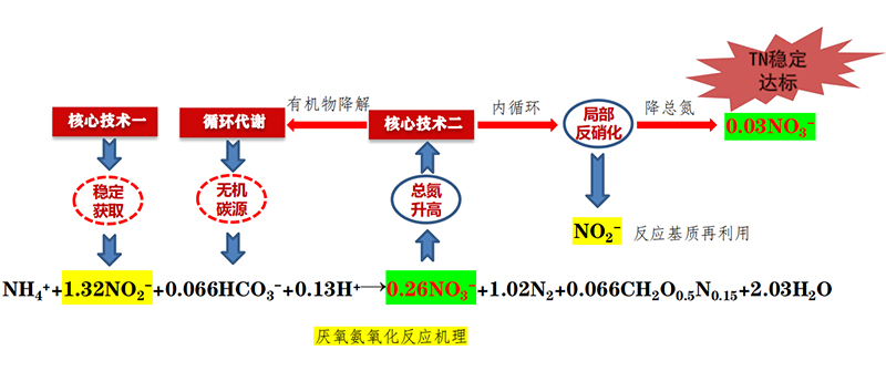反复内循环,成倍提高脱氮、有机物的去除率,提高厌氧氨氧化菌群的丰度,确保总氮稳定达标。