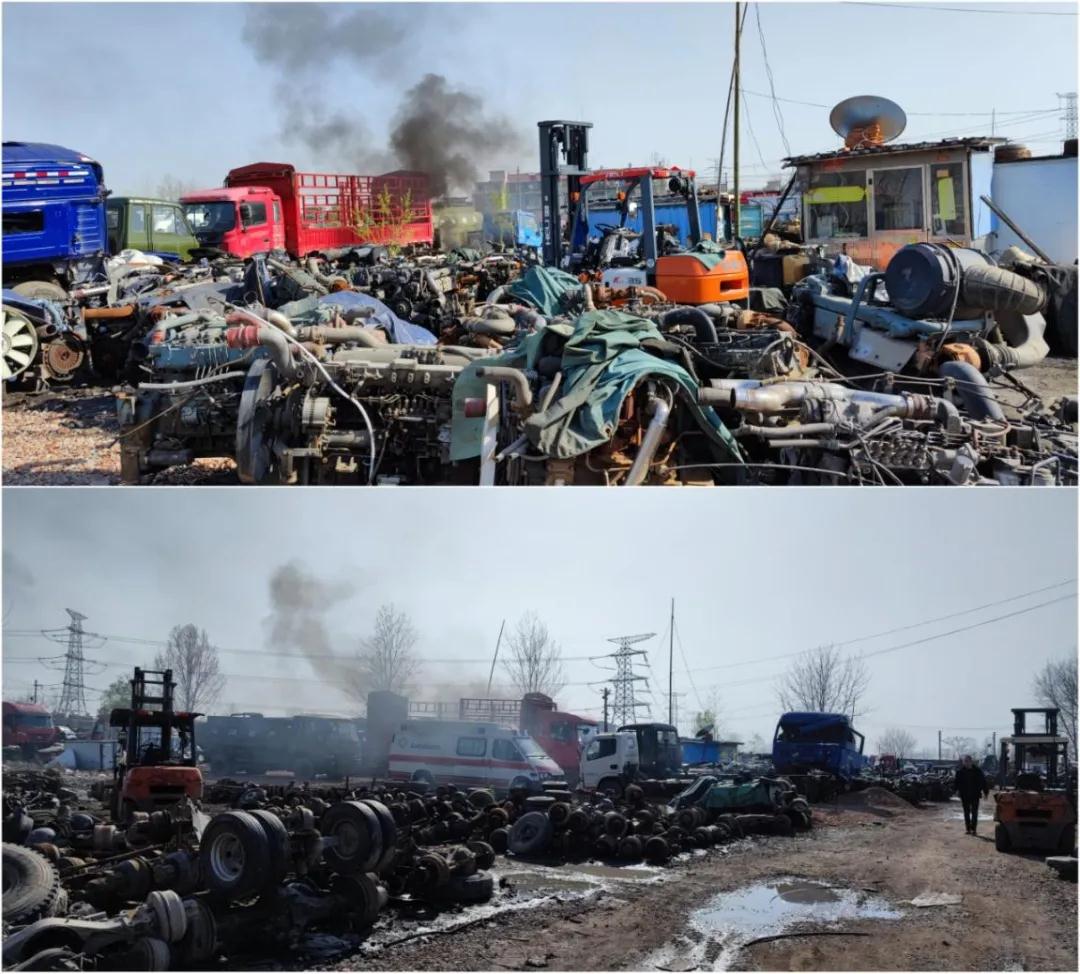 二是大气污染方面。督察发现,一些拆解过程产生的含油固体废物直接在拆解场地内露天焚烧,环境污染严重。一些拆解点边拆解边拼装,并进行露天喷漆翻新。拼装报废车和一些报废发动机在刘府镇街道两侧公然售卖,根本达不到国家规定的机动车排放标准要求,成为流动的大气污染源。