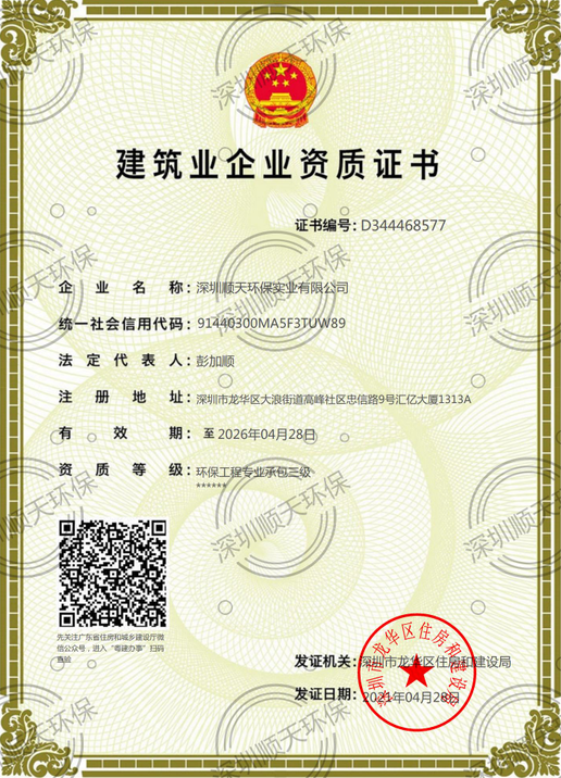 热烈祝贺我司于2021年4月28日取得国家建设部制定的建筑业企业资质证书,资质等级为环保工程专业承包三级。