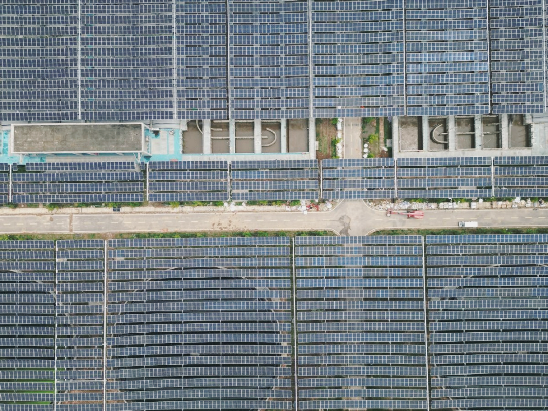 ▼污水处理厂安装光伏板后