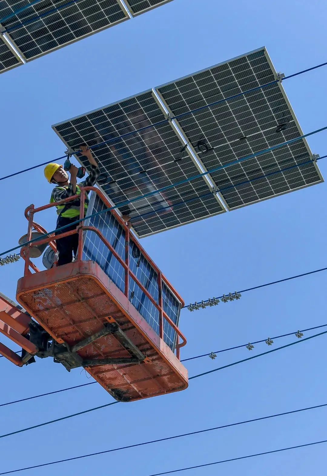 ▼空中铺设光伏板