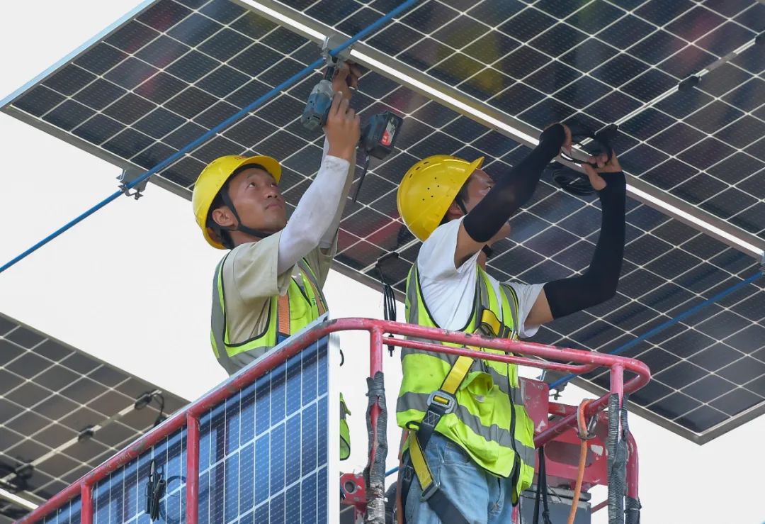 预计只需要最后几天,5.4万块光伏板将全部安装到位,并具备局部并网发电条件。