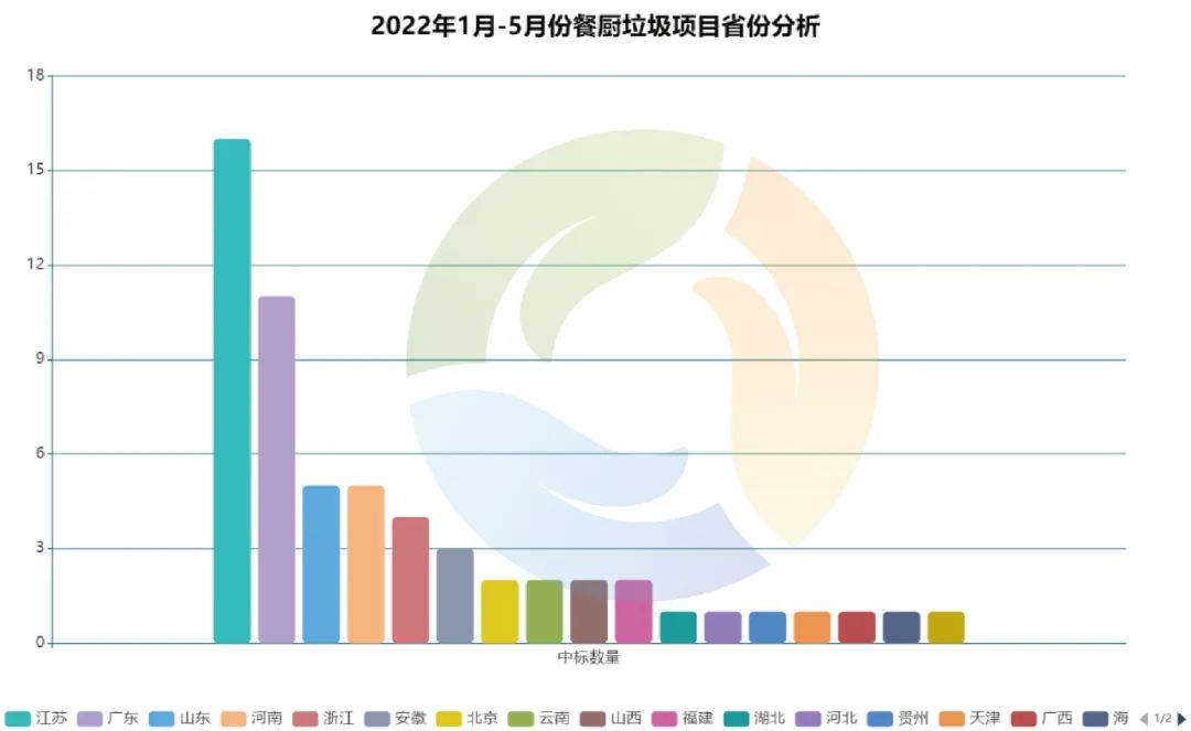 此外,在统计数据中,我们还可以发现本地国企中标趋势明显增强。例如,宜昌建投水务有限公司中标了1.6亿的宜昌市厨余垃圾资源化处理特许经营权项目,眉山市城投中恒能环保科技有限公司则中标了1.1亿眉山市餐厨垃圾综合利用项目。