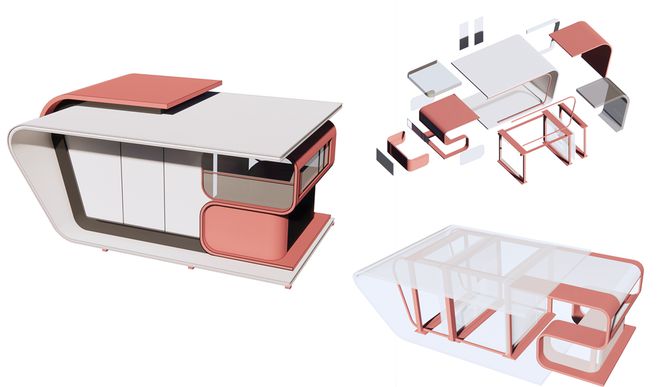 设计概念缘起于细胞结构,造型简洁、风格现代;提取不同城市风貌的色彩与材质并予以呼应;集约的尺度在满足功能的同时做到表面积最小;六边形平面为功能组合提供多种可能性;整体可拼装、预制化,极大地降低了生产、组装和运输难度;智能化的引入为使用者创造更多的便利;可替换面板让“T细胞”在平时也发挥积极作用,造福城市与市民。