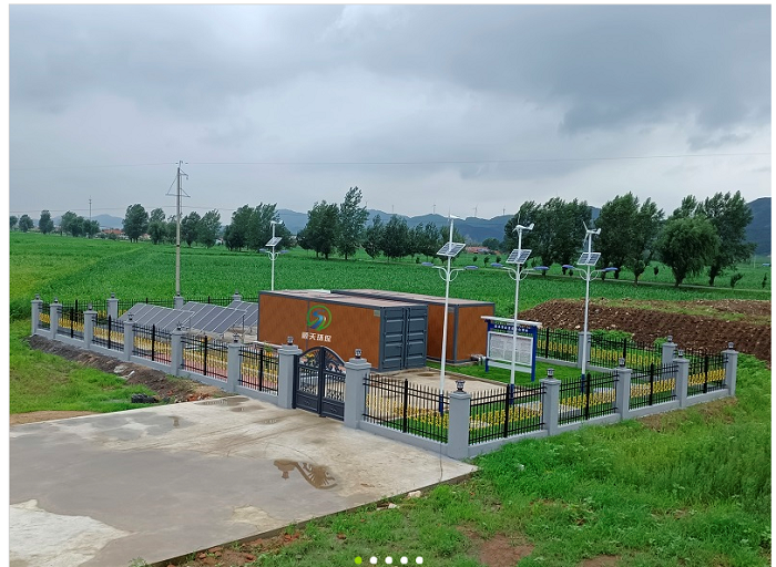 铁岭县李千户镇花豹新村污水处理站工程项目采用“逆推式高效脱氮+好氧MBR/人工湿地”专利技术,即使在冬季严寒低温气候时,也能稳定达标。本项目电路部分由太阳能光伏板、逆变器、三相交流电控制装置、应急备用市电网组成,使用清洁绿色能源,缓解了市政供电压力实现节能与技术进步、环境保护相结合。