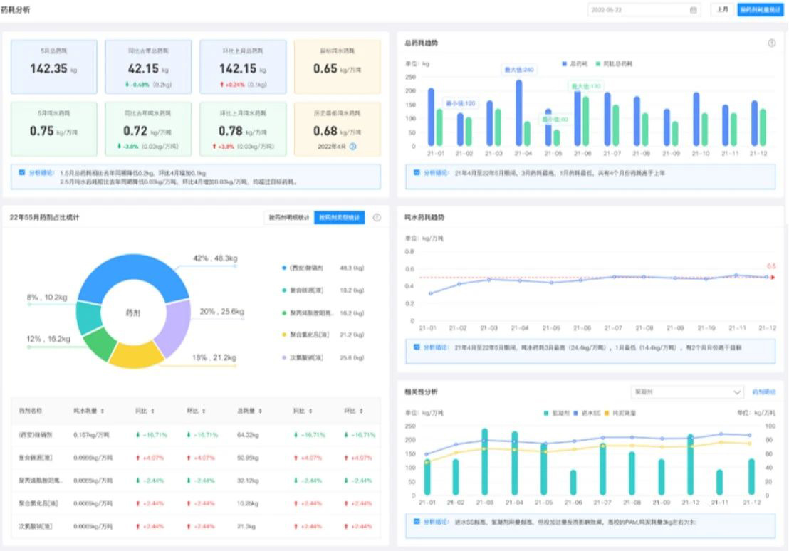 通过智慧水务平台,以一套数据表、一套业务标准拉通分散厂区的数据与业务管理,实现集团标准的复制运用,实现管理均化。集团运营中心通过生产、设备、安全、经营多维度的业务模型运用,实现对大规模污水处理厂的集约化管理。